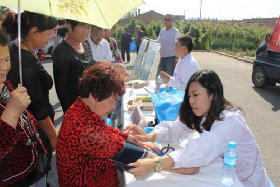 义诊专家团为群众检查身体并解答相关的健康问题